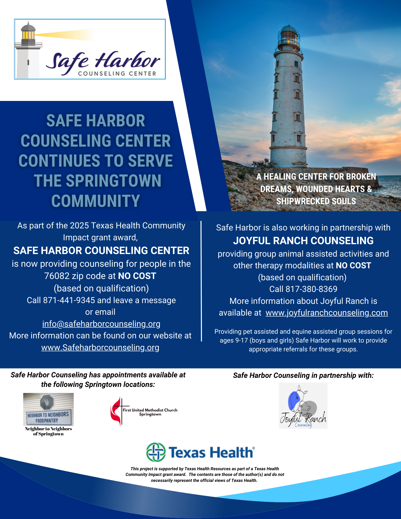 Safe Harbor will work to provide appropriate referrals for these groups.